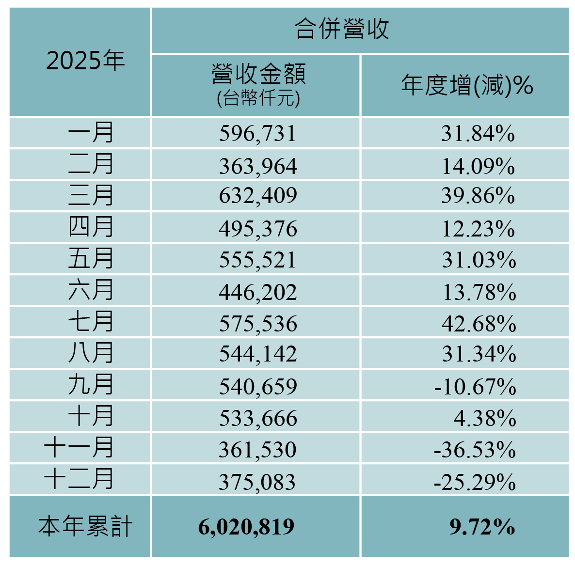 每月營收公告